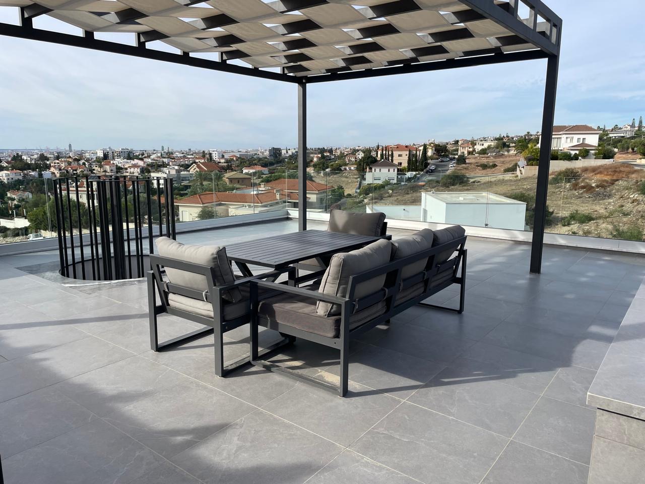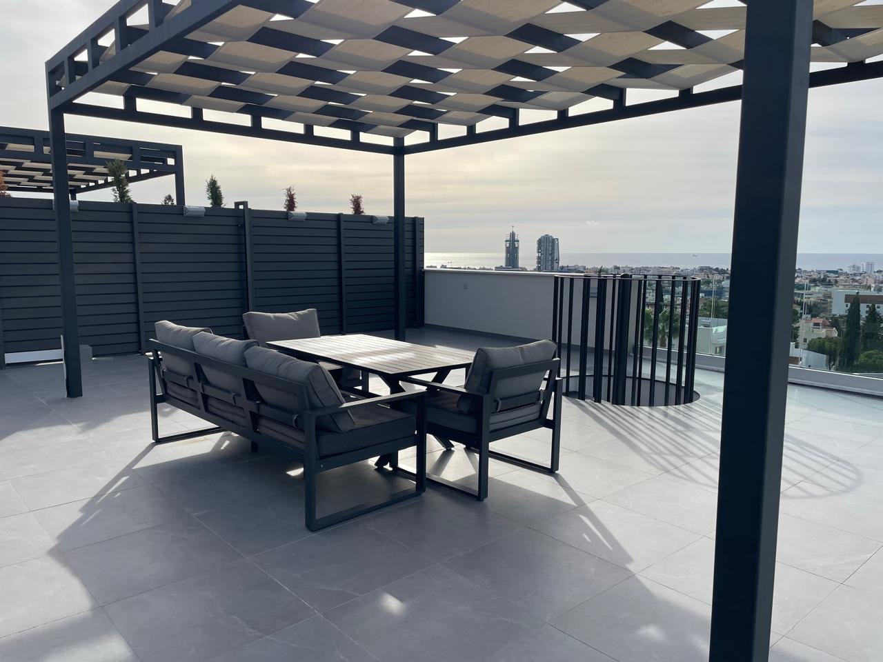 Ενοικιάζεται ρετιρέ διαμέρισμα δύο υπνοδωματίων στην Γερμασόγεια στη Λεμεσό. Αποτελείται από 100 τ.μ. καλυμμένο εσωτερικό χώρο, 30 τ.μ. βεράντα και 80 τ.μ. κήπο οροφής. Το διαμέρισμα είναι πλήρως επιπλωμένο και εξοπλισμένο με ηλεκτρικές συσκευές. Διαθέτει 2 χώρους υγιεινής, βεράντα, σύστημα κλιματισμού, υποδαπέδια θέρμανση, κήπο οροφή, αποθήκη και καλυμμένο χώρο στάθμευσης. Βρίσκεται σε πολύ καλή περιοχή και είναι κοντά σε υπηρεσίες. Η τιμή ενοικίασης είναι 2,800 ευρώ τον μήνα.