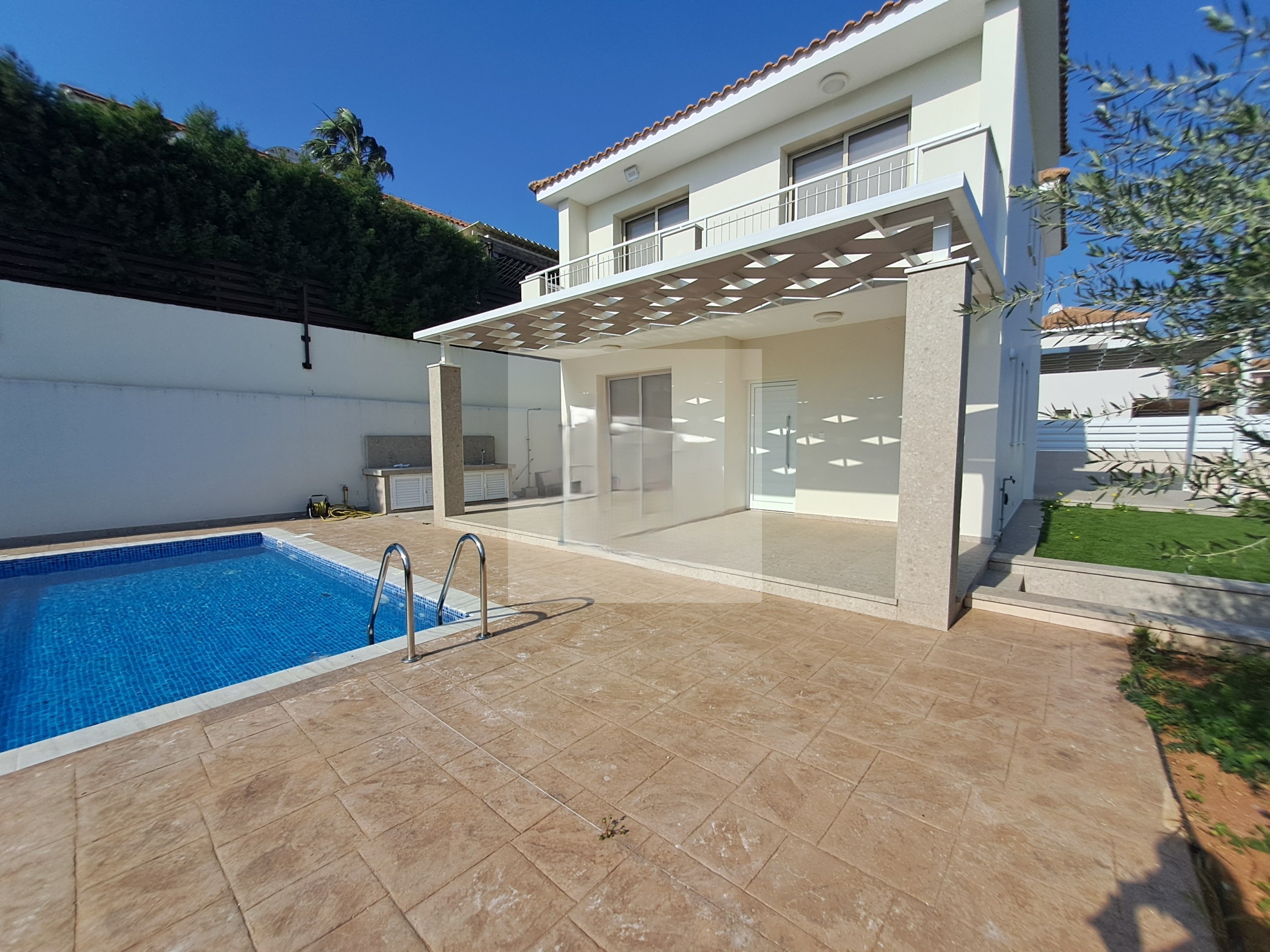 Πωλείται μοντέρνα έπαυλη τριών υπνοδωματίων στην περιοχή Κάππαρης – επαρχία Αμμοχώστου με 134 τ.μ. καλυμμένο εσωτερικό χώρο σε 350 τ.μ. οικόπεδο. Το ισόγειο αποτελείται από μοντέρνα ενιαία διαρρύθμιση κουζίνας, σαλονιού και τραπεζαρίας και μια τουαλέτα επισκεπτών. Ο επάνω όροφος αποτελείται από τρία ευρύχωρα υπνοδωμάτια και δύο μπάνια εκ των οποίων ένα ιδιωτικό μπάνιο (en-suite) στο κυρίως υπνοδωμάτιο. Στους εξωτερικούς χώρους, απολαύστε ιδιωτική πισίνα, κήπο εύκολης συντήρησης, εξωτερική ντουζιέρα, ένα ενσωματωμένο μπάρμπεκιου με πάγκο, καλυμμένη βεράντα ιδανική για διασκέδαση και ακάλυπτο χώρο στάθμευσης. Διαθέτει πλήρης επίπλωση, πλήρως εξοπλισμένη κουζίνα και σύστημα κλιματισμού σε όλους τους χώρους. Βρίσκεται κοντά στη λεωφόρο Κένεντι, το ακίνητο βρίσκεται σε κοντινή απόσταση με τα πόδια από εστιατόρια, μπαρ και παροχές, καθιστώντας το ιδανικό για μόνιμη κατοικία ή για εξοχικό. Τιμή πώλησης 480,000 ευρώ. Δεν υπόκειται σε Φ.Π.Α.