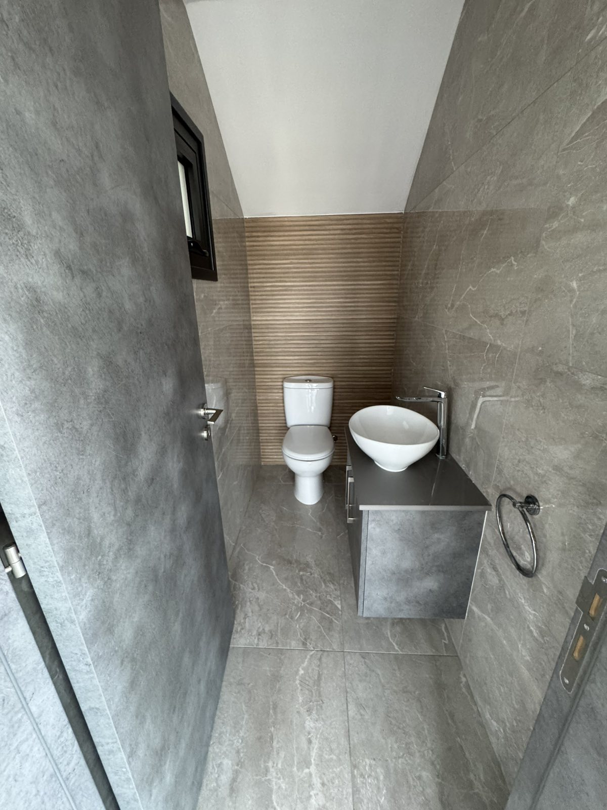 Πωλείται ετοιμοπαράδοτη κατοικία τεσσάρων υπνοδωματίων στην Δερύνεια – επαρχίας Αμμοχώστου με 146 τ.μ. εσωτερικούς χώρους σε 155 τ.μ. οικόπεδο. Το ισόγειο αποτελείται ενιαίο χώρο τραπεζαρία/καθιστικό/κουζίνα και μια τουλέτα επισκεπτών. Ο όροφος αποτελείται με τέσσερα υπνοδωμάτια και δύο χώρους υγιεινής εκ των οποίων ιδιωτικό μπάνιο (en-suite) στο κυρίως υπνοδωμάτιο. Στον εξωτερικό χώρο διαθέτει μεγάλη καλυμμένη/ακάλυπτη βεράντα, μικρό κήπο και ένα καλυμμένο χώρο στάθμευσης με ενεργειακή απόδοση Α+. Επιπλέον η οικία εμπίπτει στο νέο ακριτικό σχέδιο για κυβερνητική βοήθεια από 20,000 ευρώ μέχρι 55,000 ευρώ. Βρίσκεται κοντά από το κέντρο της Δερύνειας και κοντά σε όλες τις υπηρεσίες. Τιμή πώλησης 289,000 ευρώ πλέον Φ.Π.Α.
