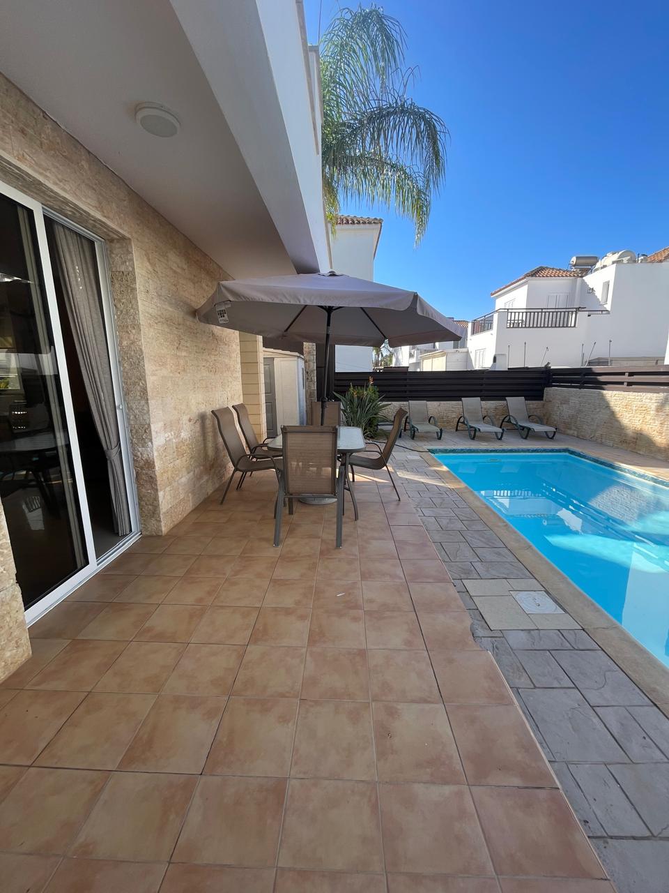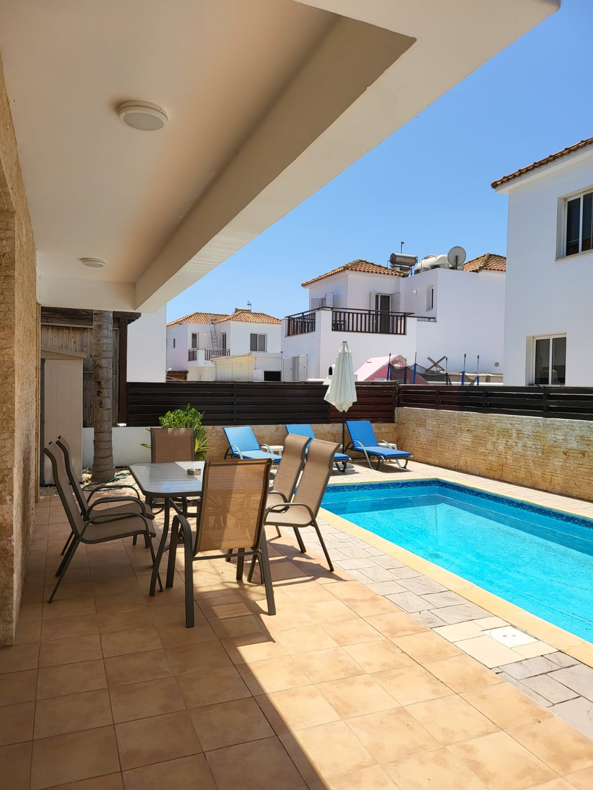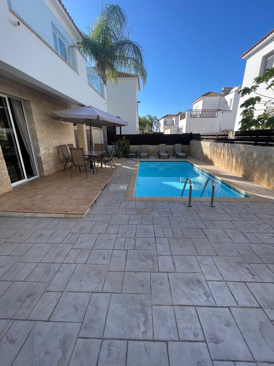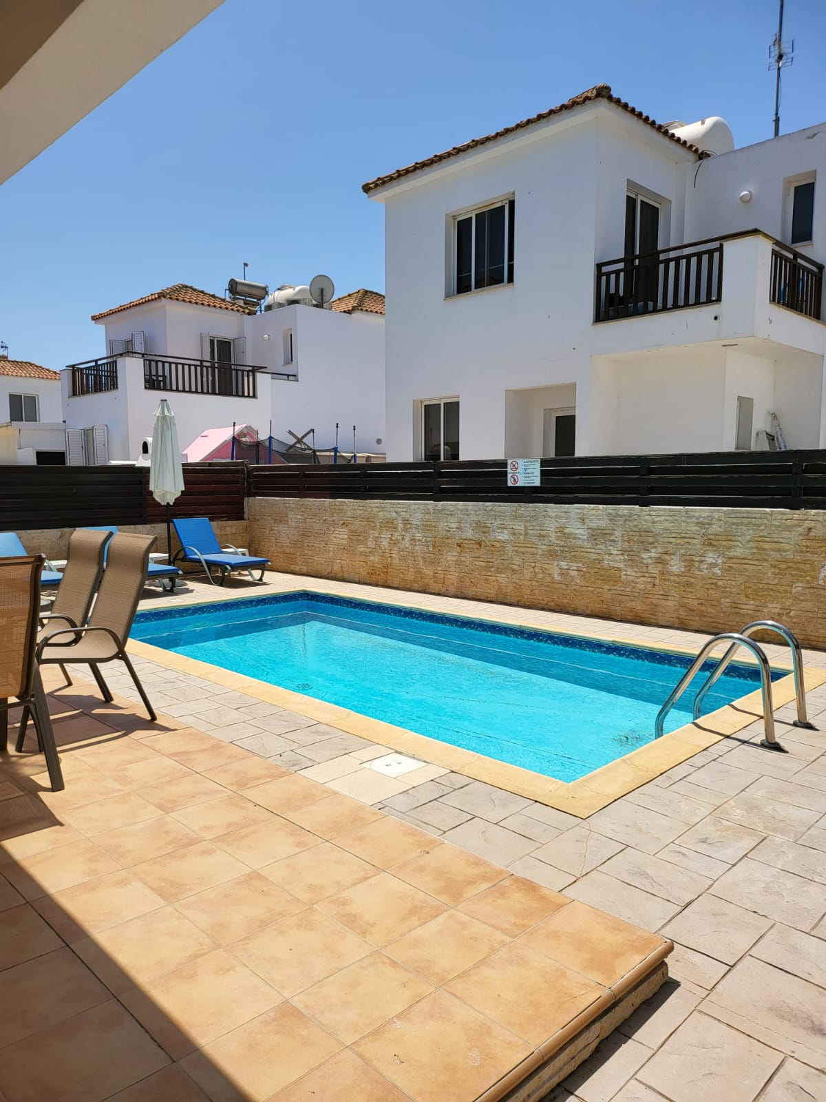 Πωλείται έπαυλη τριών υπνοδωματίων στην Αγία Θέκλα – Αγία Νάπα – επαρχία Αμμοχώστου. Η κατοικία αποτελείται από 135 τ.μ. καλυμμένo εσωτερικό χώρο χτισμένη σε 275 τ.μ. οικόπεδο. Tο ισόγειο αποτελείται από ενιαίο χώρο κουζίνας, σαλόνι/τραπεζαρία και μια τουαλέτα επισκεπτών. Ο πρώτος όροφος αποτελείται από τρία υπνοδωμάτια, ένα κυρίως μπάνιο και τρία μπαλκόνια. Εξωτερικά αποτελείται με μεγάλη αυλή, πισίνα και κήπο. Η κατοικία είναι πλήρως επιπλωμένη και διαθέτει όλες τις ηλεκτρικές συσκευές, εγκατεστημένο σύστημα κλιματισμού σε όλα τα δωμάτια, blinds στα παράθυρα, εξωτερική αποθήκη και δύο καλυμμένους/ακάλυπτους χώρους στάθμευσης. Επίσης η γύρω περιοχή του ακινήτου αποτελείται από βίλες προσφέροντας πολύ κοντά της οικίας όλες τις ανέσεις και εύκολη πρόσβαση στον αυτοκινητόδρομο. Βρίσκεται σε εξαιρετική τοποθεσία σε απόσταση μόνο 600 μέτρων από την παραλία. Τιμή πώλησης 435,000 ευρώ. Δεν υπόκειται σε Φ.Π.Α.