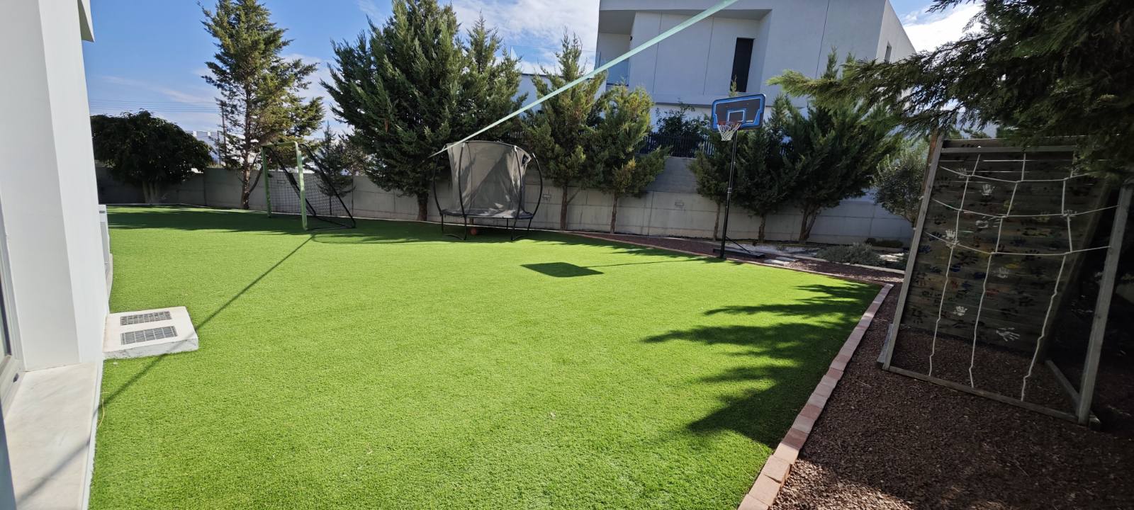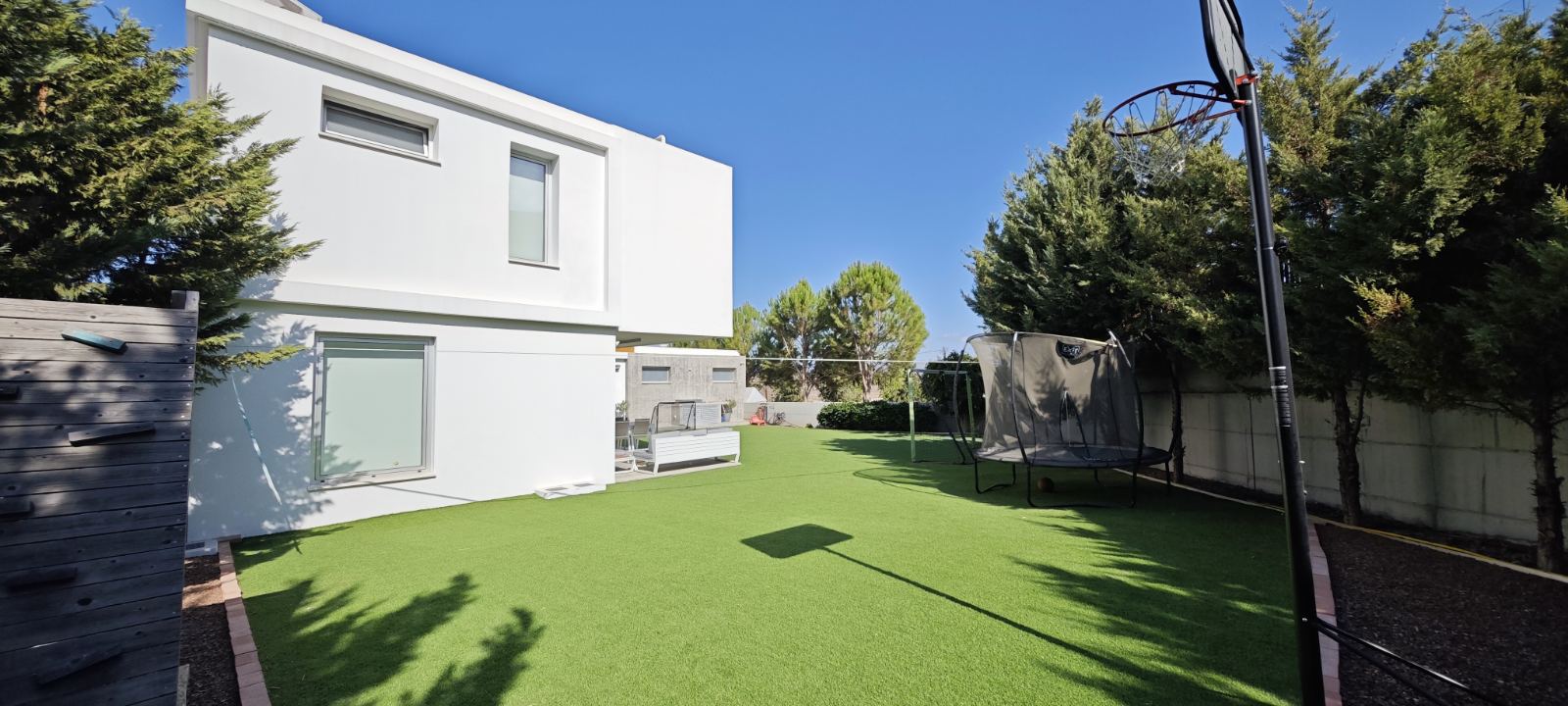 Πωλείται μεταχειρισμένη ανεξάρτητη κατοικία τριών υπνοδωματίων συν γραφείο στην περιοχή Γερίου – επαρχία Λευκωσίας, με 225 τ.μ. συνολικό εσωτερικό χώρο, χτισμένο σε 650 τ.μ. οικόπεδο, του 2016. Διαθέτει υποδαπέδια κεντρική θέρμανση γκαζιού και συστήματα κλιματισμού σε όλους τους χώρους, 3 μπάνια, 2 en-suite σε 2 από τα υπνοδωμάτια και γκαρνταρόμπα στο κυρίως υπνοδωμάτιο, ηλεκτρικά shutters και blinds στα παράθυρα, πιεστικό σύστημα νερού, τζάκι, μεγάλη βεράντα με ψησταριά και μεγάλο κήπο με διάτρηση, αποθήκη και διπλό καλυμμένο χώρο στάθμευσης με ηλεκτρική πόρτα. Επιπρόσθετα διαθέτει γραφείο, πλυσταριό, σύστημα συναγερμού με κάμερες και φωτοβολταϊκό σύστημα απόδοσης 4KW. Βρίσκεται σε υπέροχη περιοχή, δίπλα από χώρο πρασίνου, κοντά σε πάρκο, σε αδιέξοδο. Τιμή πώλησης 560.000 ευρώ.