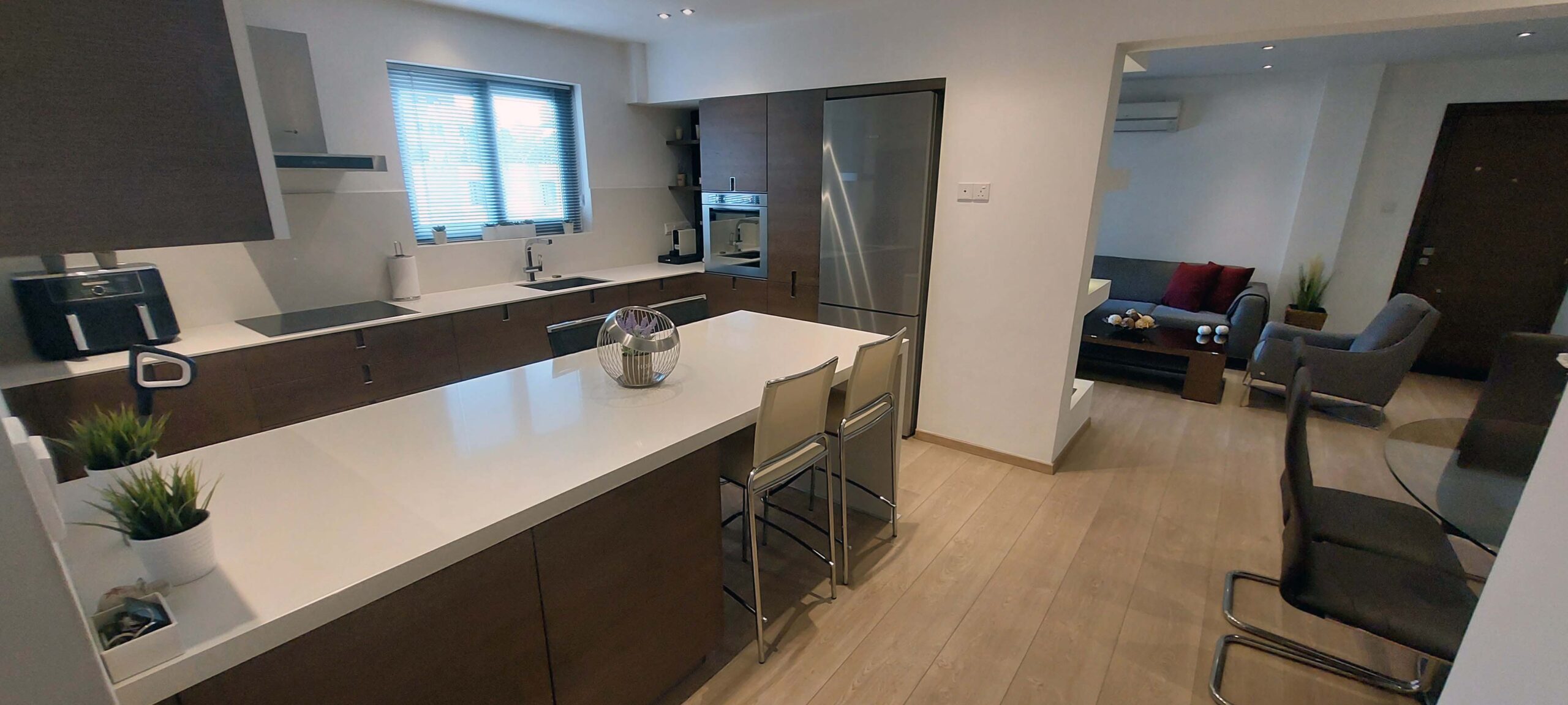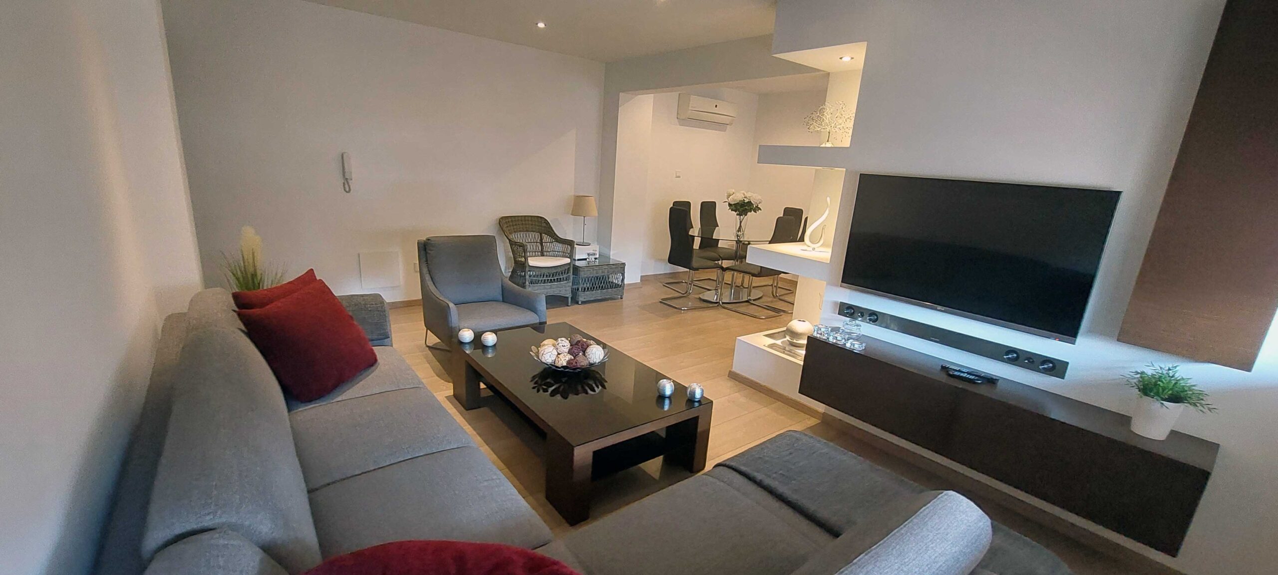 Πωλείται μεταχειρισμένο διαμέρισμα δύο υπνοδωματίων στην Ακρόπολη – επαρχία Λευκωσίας, χτισμένο το 1992 και πλήρως ανακαινισμένο το 2013, στον 1ο όροφο πενταώροφης πολυκατοικίας με 14 διαμερίσματα συνολικά, με 83 τ.μ. εσωτερικό χώρο και 62 τ.μ. καλυμμένη βεράντα, σε άριστη κατάσταση. Διαθέτει φούρνο, ψυγείο, ηλεκτρικά μάτια και αποσμητήρα, πλυντήριο πιάτων, πλυντήριο ρούχων, φούρνο μικροκυμμάτων, τηλεόραση, έπιπλα τραπεζαρίας, έπιπλα σαλονιού, έξτρα αποθηκευτικούς χώρους, 1 κυρίως μπάνιο, κλιματισμό τύπου split unit σε όλους τους χώρους, ηλιακό, blinds σε όλα τα παράθυρα, γυψοσανίδες και κρυφό φωτισμό σε όλους τους χώρους, Τιμή πώλησης 168,000 ευρώ.