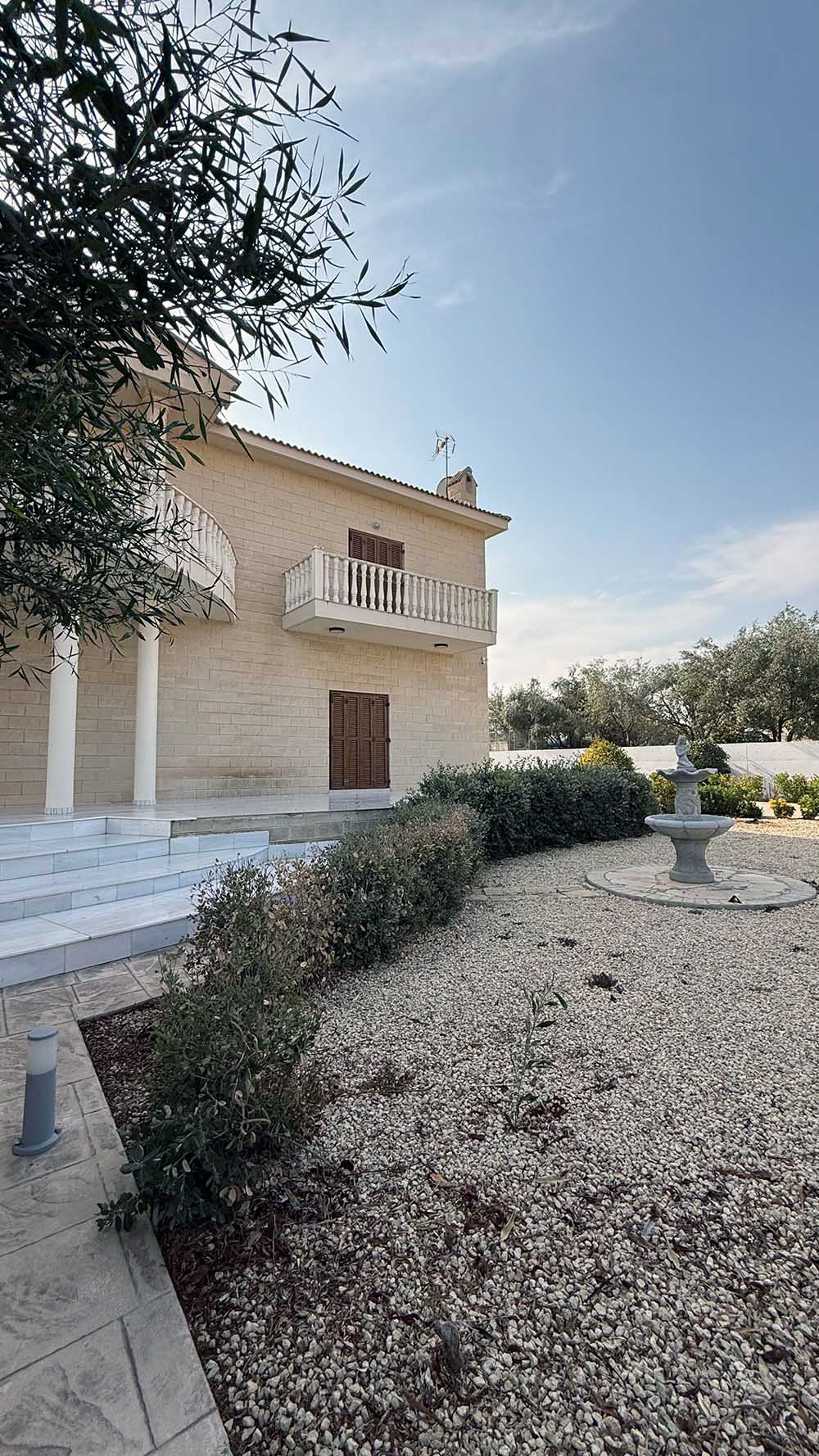 Πωλείται ανεξάρτητη βίλα επτά υπνοδωματίων στους Αγίους Τριμιθιάς, 600 τετραγωνικών μέτρων εσωτερικά πλέον 300 τ.μ. υπόγειο, σε οικόπεδο των 5000 τετραγωνικών μέτρων, χτισμένη το 2010, με πισίνα 10×11 μέτρων και έναν ώριμο και όμορφα διαμορφωμένο κήπο. Η κατοικία πωλείται πλήρως επιπλωμένη. Διαθέτει en-suite και γκαρνταρόμπες σε 3 από τα υπνοδωμάτια, υποδαπέδια κεντρική θέρμανση, συστήματα κλιματισμού σε όλους τους χώρους, τζάκι, περσιάνες και blinds στα παράθυρα, σύστημα συναγερμού με κάμερες, πλυσταριό, δωμάτιο υπηρεσίας και γραφείο. Επιπλέον διαθέτει ανελκυστήρα, σάουνα, κάβα, πιεστικό σύστημα νερού, 2 διατρήσεις, αυτόματο σύστημα ποτίσματος, μεγάλη αυλή με πέργολα (πάτιο), ψησταριά και πισίνα, πολλούς αποθηκευτικούς χώρους, 4 χώρους στάθμευσης στο υπόγειο, με ηλεκτρική καγκελόπορτα. Η οικία βρίσκεται σε ήσυχη οικιστική περιοχή, κοντά σε χώρο πρασίνου. Τιμή πώλησης 2,500.000 ευρώ.