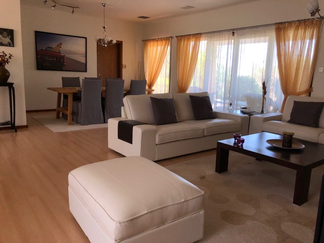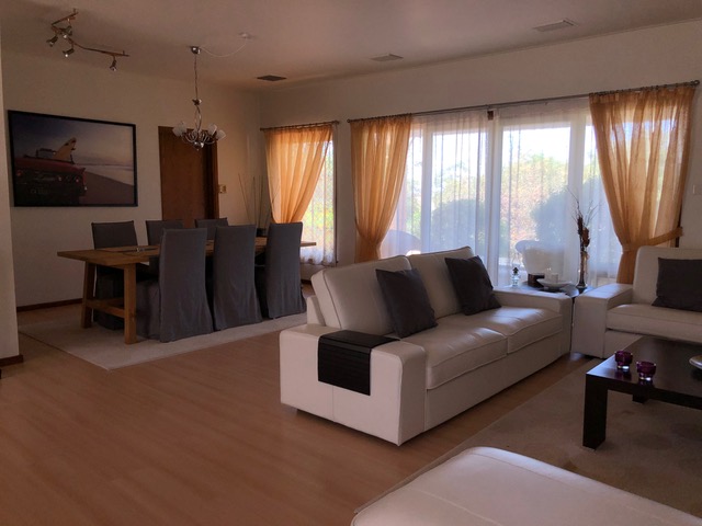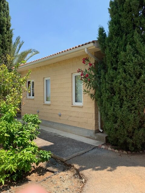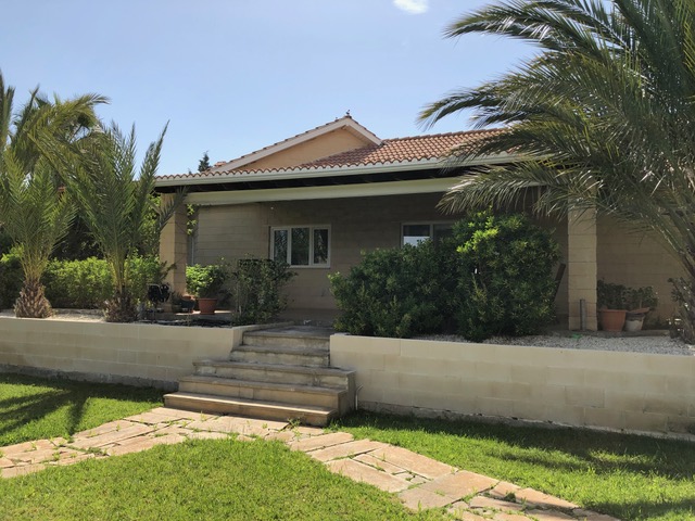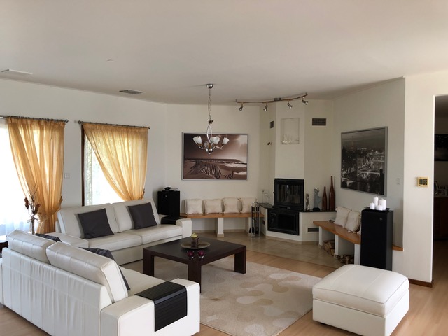 Πωλείται στους Αγίους Τριμιθιάς, μεταχειρισμένη ανεξάρτητη βίλα 330 τετραγωνικών μέτρων εσωτερικά, 4 υπνοδωματίων (συν γραφείο και σοφίτα εντός της οικίας) συν συγκρότημα 4 γραφείων, σε οικόπεδο των 5.352 τετραγωνικών μέτρων, χτισμένη το 2003, με πισίνα 10×5 μέτρων και έναν ώριμο και όμορφα διαμορφωμένο κήπο. Η κατοικία είναι ισόγεια και πωλείται πλήρως επιπλωμένη. Διαθέτει διαμέρισμα ενός υπνοδωματίου με ξεχωριστή είσοδο από την έπαυλη που μπορεί να χρησιμοποιηθεί ως διαμέρισμα υπηρεσίας ή ξενώνα, en-suite σε όλα τα υπνοδωμάτια και γκαρνταρόμπα στα 3 υπνοδωμάτια, ηλεκτρική υποδαπέδια κεντρική θέρμανση, καινούρια συστήματα κλιματισμού σε όλους τους χώρους, 3 τζάκια, περσιάνες και blinds στα παράθυρα, τζακούζι, σοφίτα η οποία μπορεί να διαμορφωθεί και σαν έξτρα δωμάτιο διαμονής όπως και γραφείο το οποίο συνορέυει με το κυρίως υπνοδωμάτιο. Η βίλα είναι κατασκευασμένη από ξύλινο σκελετό καλυμμένο με φυσικές πέτρες. Όλοι οι τοίχοι και οι οροφές είναι μονωμένες. Αυτό την καθιστά ενεργειακά αποδοτική και είναι αρκετά δροσερή το καλοκαίρι και ζεστή το χειμώνα χωρίς να χρειάζεται πολύ ψύξη ή θέρμανση. Η φυσική πέτρα μειώνει επίσης την ανάγκη για εξωτερική συντήρηση. Επίσης διαθέτει πιεστικό σύστημα νερού, διάτρηση, αυτόματο σύστημα ποτίσματος, μεγάλη αυλή με πέργολα, ψησταριά και πισίνα, πολλούς αποθηκευτικούς χώρους και 2 χώρους στάθμευσης τύπου side by side. Μέσα στο χώρο του οικοπέδου, υπάρχει συγκρότημα 4 γραφείων 120 τ.μ. συνολικά. Η οικία εχει ανακαινιστεί το 2017, βρίσκεται σε ήσυχη οικιστική περιοχή, κοντά σε χώρο πρασίνου, με τίτλο ιδιοκτησίας. Τιμή πώλησης 699.000 ευρώ.