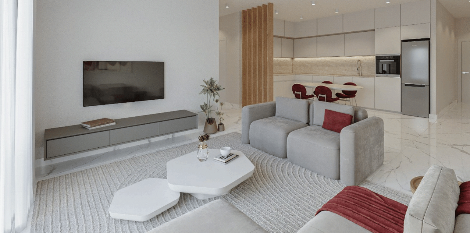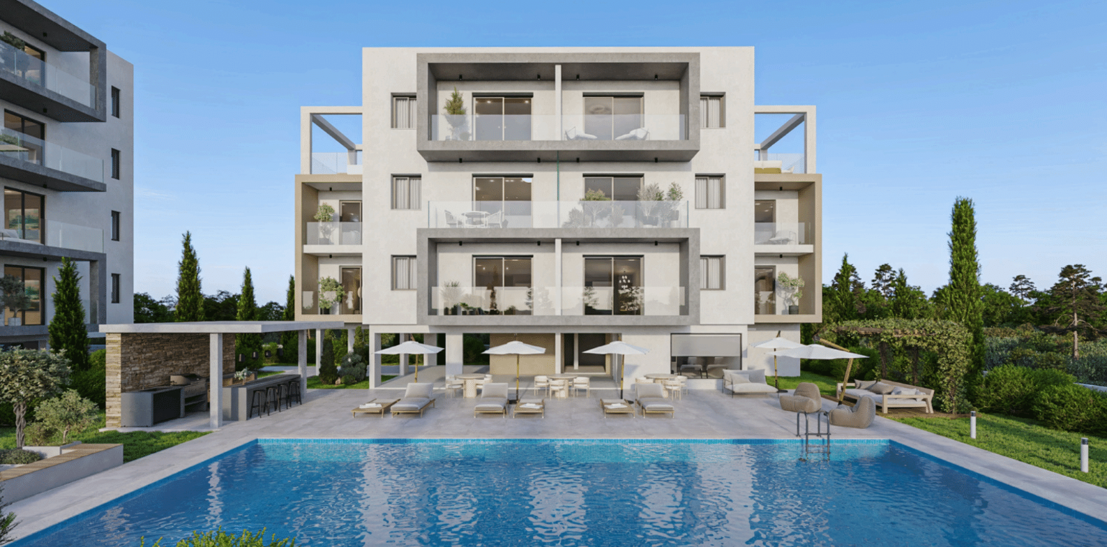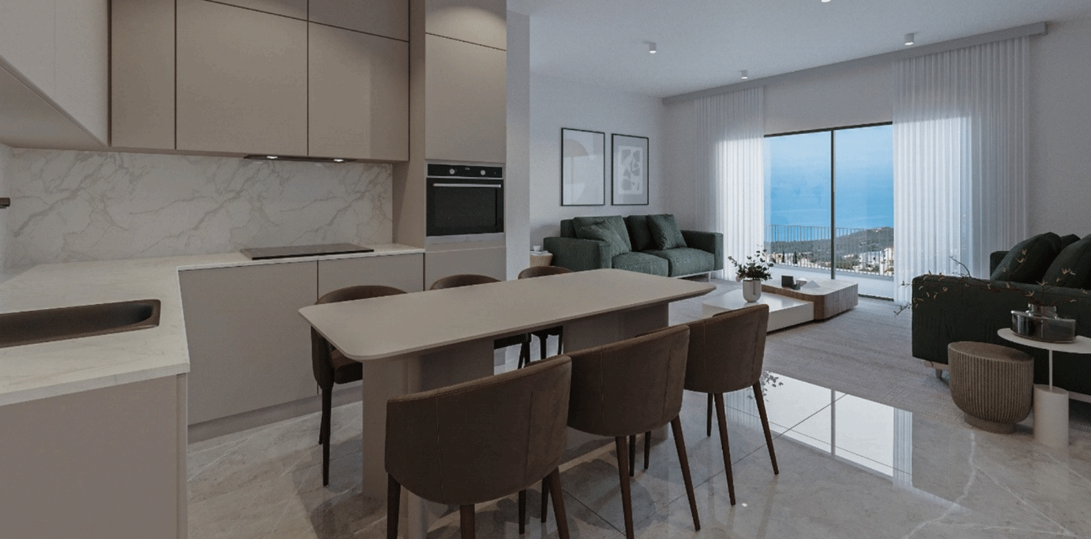 Πωλείται υπό ανέγερση διαμέρισμα δύο υπνοδωματίων στην περιοχή Universal της επαρχίας Πάφου. Το διαμέρισμα αποτελείται από 77 τ.μ. καλυμμένου εσωτερικού χώρου και 26 τ.μ. καλυμμένης βεράντας και διαθέτει επίσης ένα χώρο υγιεινής. Επιπλέον, περιλαμβάνει κοινόχρηστο χώρο στάθμευσης και κοινόχρηστη πισίνα. Το διαμέρισμα βρίσκεται στον τέταρτο όροφο τετραώροφης πολυκατοικίας και είναι κοντά σε χώρο πρασίνου και σε πολλές υπηρεσίες, όπως το κέντρο της πόλης, παραλίες, το αεροδρόμιο, σχολεία, σούπερ μάρκετ και άλλα. Τιμή πώλησης 430.000 ευρώ πλέον Φ.Π.Α.