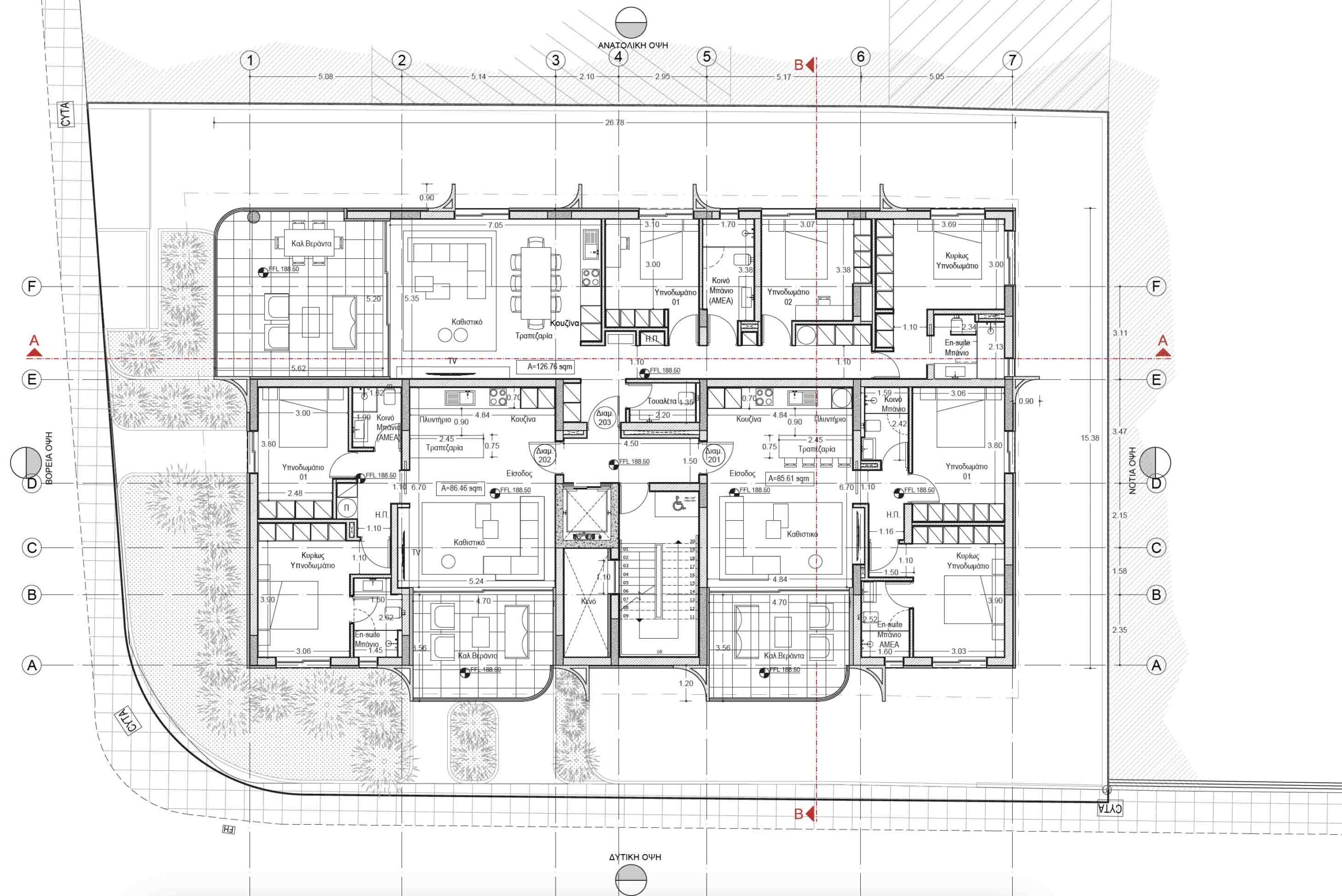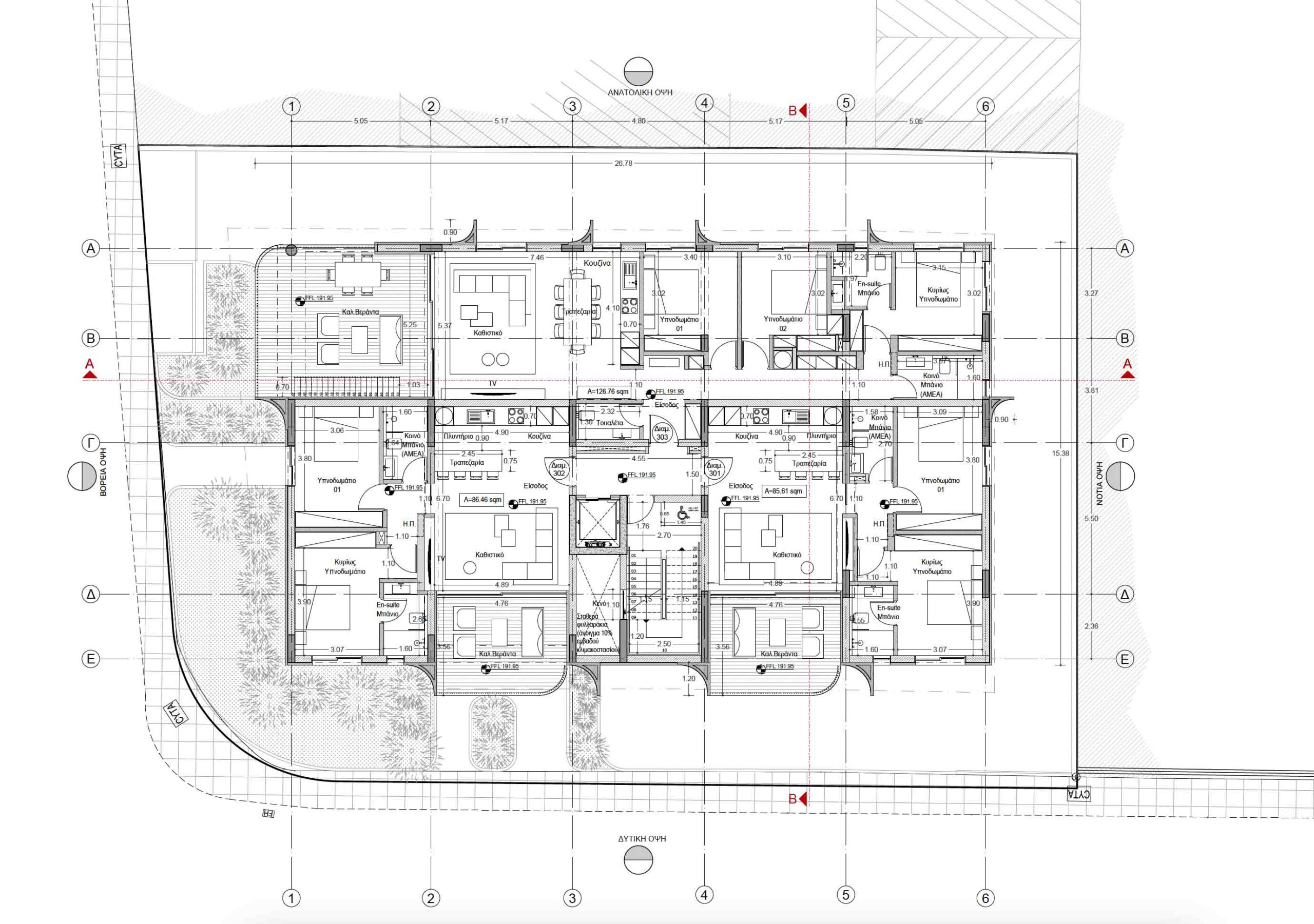 Πωλείται υπό ανέγερση διαμέρισμα δύο υπνοδωματίων στην Έγκωμη – επαρχία Λευκωσίας, με 86 τ.μ. καλυμμένο εσωτερικό χώρο και 18 τ.μ. καλυμμένη βεράντα, στον 1ο όροφο τριώροφης πολυκατοικίας με 9 διαμερίσματα στο σύνολο. Διαθέτει πλήρη εγκατάσταση συστήματος κλιματισμού τύπου split unit σε όλους τους χώρους, πλήρη εγκατάσταση υποδαπέδιας θέρμανσης με heat pump, σύστημα θυροτηλεόρασης τελευταίας τεχνολογίας, δυνατότητα εγκατάστασης φωτοβολταϊκού συστήματος 2,5KW στην οροφή, παρκέ σε σαλόνι και κουζίνα, πρόνοια για ηλεκτρικά shutters στα υπνοδωμάτια, πιεστικό σύστημα νερού, ηλιακό θερμοσίφωνα υψηλής απόδοσης και ποιότητας, 1 κυρίως μπάνιο και en-suite στο κυρίως υπνοδωμάτιο, καλυμμένο χώρο στάθμευσης με πρόνοια για εγκατάσταση σημείου φόρτισης ηλεκτρικού οχήματος και αποθήκη. Το διαμέρισμα βρίσκεται σε ήσυχη γειτονιά της Έγκωμης, πλησίον της Ρώσικης και Αμερικάνικης πρεσβείας, με εύκολη πρόσβαση σε κεντρικούς δρόμους και υπηρεσίες της πόλης, ιδανικό τόσο για επένδυση όσο και για ιδιοκατοίκηση. Η πολυκατοικία έχει πιστοποιητικό Ενεργειακής Απόδοσης Α΄. Τιμή πώλησης 277,500 ευρώ πλέον Φ.Π.Α.