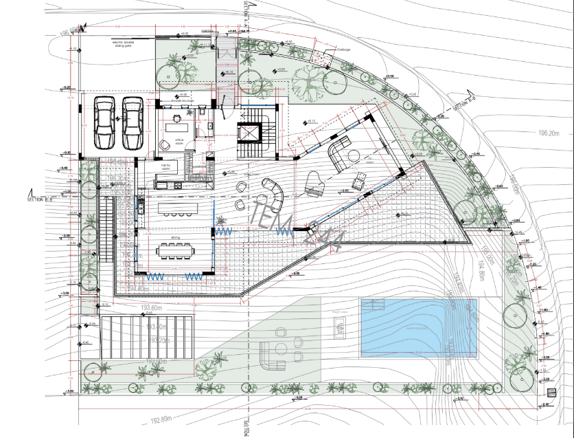 Πωλείται υπό ανέγερση γωνιακή πολυτελή έπαυλη πέντε υπνοδωματίων στην περιζήτητη περιοχή Άγιος Αθανάσιος της επαρχίας Λεμεσού, σχεδιασμένη με σύγχρονη αρχιτεκτονική, υψηλές προδιαγραφές κατασκευής και έμφαση στη λεπτομέρεια. Αποτελείται από 301 τ.μ. υπόγειο, 253 τ.μ. ισόγειο, 228 τ.μ. πρώτο όροφο και 1,056 τ.μ. οικόπεδο, προσφέροντας άνετους και λειτουργικούς χώρους ιδανικούς τόσο για καθημερινή διαβίωση όσο και για φιλοξενία. Η οικία διαθέτει πέντε ευρύχωρα υπνοδωμάτια με ιδιωτικά μπάνια και γκαρνταρόμπες, συνολικά πέντε χώρους υγιεινής, μεγάλες βεράντες με ανεμπόδιστη θέα, πρόνοια για σύστημα κλιματισμού και ενδοδαπέδιας θέρμανσης, έξυπνες υποδομές smart home, ανελκυστήρα με πρόσβαση σε όλους τους ορόφους, ιδιωτική πισίνα, φωτοβολταϊκό σύστημα, διαμορφωμένο κήπο με χώρους χαλάρωσης και BBQ, καλυμμένο χώρο στάθμευσης για πολλαπλά οχήματα, ευρύχωρο καθιστικό με μεγάλες γυάλινες επιφάνειες, εντυπωσιακή κουζίνα υψηλής αισθητικής με τραπεζαρία, αποθηκευτικούς χώρους και laundry room, καθώς και υπόγειο που μπορεί να διαμορφωθεί σε χώρο γυμναστηρίου, home cinema, spa ή κελάρι κρασιών. Το έργο διαθέτει πιστοποιητικό ενεργειακής απόδοσης Α, σύγχρονα θερμομονωτικά και ηχομονωτικά υλικά, ποιοτικά τελειώματα και βρίσκεται σε εξαιρετική τοποθεσία κοντά σε σχολεία, υπηρεσίες, καταστήματα και βασικές ανέσεις, συνδυάζοντας ιδιωτικότητα, πολυτέλεια και άμεση πρόσβαση στο κέντρο της πόλης. Τιμή πώλησης 4,250,000 ευρώ, πλέον Φ.Π.Α.