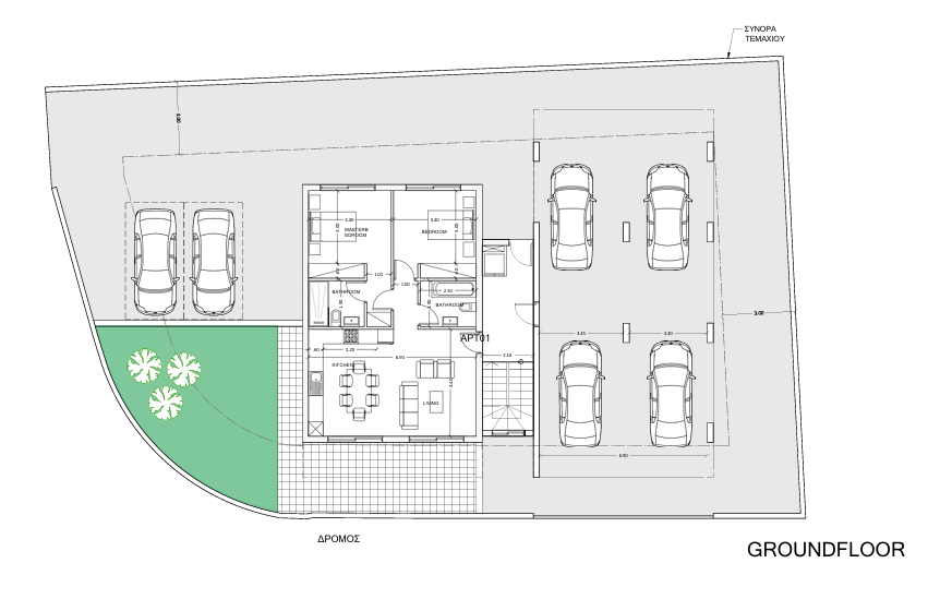 Πωλείται υπό ανέγερση ισόγειο διαμέρισμα δύο υπνοδωματίων στην Γεροσκήπου – Πάφος. Αποτελείται από 79 τ.μ. καλυμμένο εσωτερικό χώρο και 10 τ.μ. καλυμμένη βεράντα. Διαθέτει δύο χώρους υγιεινής, en suite στο κυρίως υπνοδωμάτιο, πιεστικό σύστημα νερού, κεντρική θέρμανση, σύστημα κλιματισμού, αποθήκη, καλυμμένο χώρο στάθμευσης, φόρτισης ηλεκτρικών οχημάτων και ηλεκτρική πύλη εισόδου. Βρίσκεται σε καλή περιοχή κοντά σε διάφορες ανέσεις. Τιμή πώλησης 245,000 ευρώ πλέον ΦΠΑ.