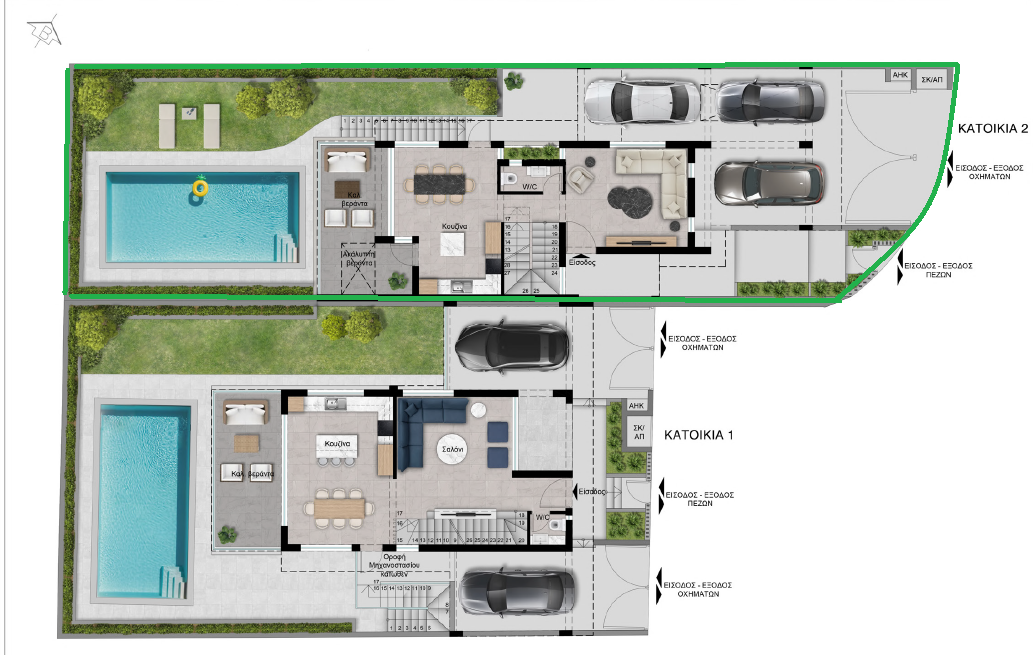 Πωλείται υπό ανέγερση μοντέρνα τριώροφη οικία τεσσάρων υπνοδωματίων στην περιοχή Άγιος Αθανάσιος της επαρχίας Λεμεσός, σε μια ιδιαίτερα προνομιακή και αναπτυσσόμενη τοποθεσία που συνδυάζει ηρεμία, εύκολη πρόσβαση και εγγύτητα σε όλες τις απαραίτητες υπηρεσίες και ανέσεις, όπως σχολεία, υπεραγορές, καταστήματα και κύριους οδικούς άξονες. Η κατοικία έχει σχεδιαστεί με σύγχρονη αρχιτεκτονική αισθητική, λειτουργική διαρρύθμιση και έμφαση στην άνεση και την ποιότητα κατασκευής, αποτελώντας ιδανική επιλογή τόσο για ιδιοκατοίκηση όσο και για επένδυση. Αποτελείται από 70 τ.μ. καλυμμένο εσωτερικό υπόγειο που μπορεί να αξιοποιηθεί ως βοηθητικός χώρος, αποθηκευτικός χώρος ή χώρος ψυχαγωγίας, 61 τ.μ. ισόγειο με ευρύχωρο καθιστικό και τραπεζαρία ενιαίας διαρρύθμισης, 73 τ.μ. καλυμμένο πρώτο όροφο όπου βρίσκονται τα υπνοδωμάτια, καθώς και εντυπωσιακό κήπο οροφής 95 τ.μ. ιδανικό για χαλάρωση, φιλοξενία και δημιουργία επιπλέον χώρου αναψυχής με ανεμπόδιστη θέα. Το ακίνητο αποτελείται συνολικά από 306 τ.μ. καλυμμένους εσωτερικούς χώρους και ανεγείρεται σε οικόπεδο 310 τ.μ., προσφέροντας άνετους εξωτερικούς χώρους με ιδιωτική πισίνα, διαμορφωμένο κήπο, αυλή, καθώς και καλυμμένες και ακάλυπτες βεράντες που ενισχύουν τη λειτουργικότητα και την ποιότητα ζωής. Διαθέτει πέντε χώρους υγιεινής, εκ των οποίων τα δύπο en suite στο κυρίως υπνοδωμάτιο και στο υπόγειο, εξασφαλίζοντας ιδιωτικότητα και άνεση, ενώ περιλαμβάνει πρόνοια για σύστημα κλιματισμού και θέρμανσης, πιεστικό σύστημα νερού, ηλιακό θερμοσίφωνα και εγκατεστημένο φωτοβολταϊκό σύστημα για εξοικονόμηση ενέργειας και μειωμένο λειτουργικό κόστος. Επιπλέον, προσφέρει 2 αποθήκες και καλυμμένο χώρο στάθμευσης. Το έργο διαθέτει πιστοποιητικό ενεργειακής απόδοσης κατηγορίας Α, γεγονός που διασφαλίζει υψηλά επίπεδα ενεργειακής αποδοτικότητας και σύγχρονες προδιαγραφές κατασκευής. Τιμή πώλησης 970,000 ευρώ, πλέον Φ.Π.Α.
