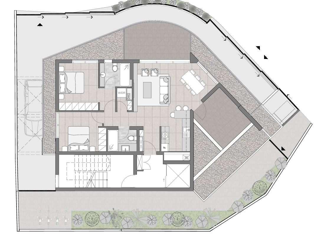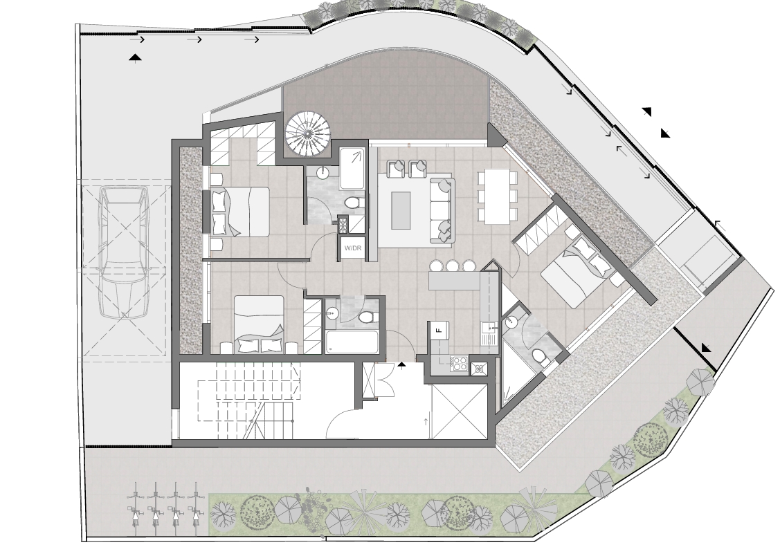 Πωλείται υπο ανέγερση μοντέρνο διαμέρισμα 2+1 υπνοδωματίων στο κέντρο της Λάρνακας με 93 τ.μ. καλυμμένο εσωτερικό χώρο, 12 τ.μ. καλυμμένη βεράντα και 16 τ.μ. επιπλέον καλυμμένος χώρος στον 2ο όροφο τετραώροφης πολυκατοικίας με 4 διαμερίσματα στο σύνολο, ένα σε κάθε όροφο. Το διαμέρισμα αποτελείται από ενιαίο χώρο κουζίνα/τραπεζαρία/σαλόνι, πλυσταριό και δύο χώρους υγιεινής εκ των οποίων ιδιωτικό μπάνιο (en-suite) στο κυρίως υπνοδωμάτιο. Διαθέτει πρόνοια συστήματος κλιματισμού, θυροτηλεόραση στην είσοδο, αποθήκη και ένα καλυμμένο χώρο στάθμευσης. Βρίσκεται κοντά στο κέντρο της πόλης, κοντά σε όλες τις υπηρεσίες. Τιμή πώλησης 399,000 ευρώ πλέον Φ.Π.Α.