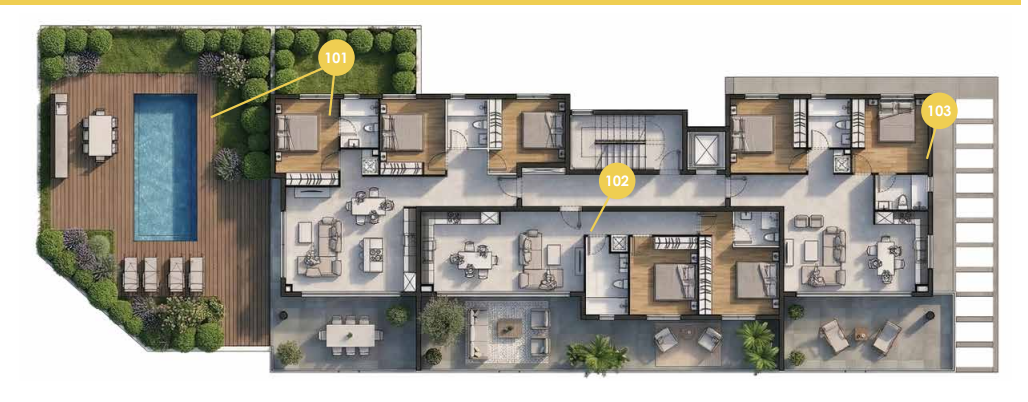 Πωλείται υπό ανέγερση μοντέρνο διαμέρισμα τριών υπνοδωματίων στην Ορόκλινη – επαρχία Λάρνακας, με 100 τ.μ. καλυμμένο εσωτερικό χώρο, 28 τ.μ. καλυμμένη βεράντα και 203 τ.μ. κήπο με πισίνα, στον πρώτο όροφο τριώροφης πολυκατοικίας με 9 διαμερίσματα στο σύνολο. Διαθέτει ενιαίο χώρο καθιστικού/κουζίνα/τραπεζαρία, δύο χώρους υγιεινής εκ των οποίων en suite στο κυρίως υπνοδωμάτιο, πρόνοια κλιματισμού, ηλιακό θερμοσίφωνα, διπλά παράθυρα, καλυμμένο χώρο στάθμευσης και αποθήκη. Επίσης διαθέτει και κοινόχρηστη πισίνα με χώρο BBQ και κοινόχρηστο γυμναστήριο. Το κτίριο είναι ενεργειακής κλάσης Α’ και διαθέτει περίφραξη. Βρίσκεται κοντά σε πολλές υπηρεσίες, με εύκολη πρόσβαση στον αυτοκινητόδρομο και 3 λεπτά από την παραλία με θέα το βουνό και την θάλασσα. Τιμή πώλησης 415,000 ευρώ πλέον Φ.Π.Α.